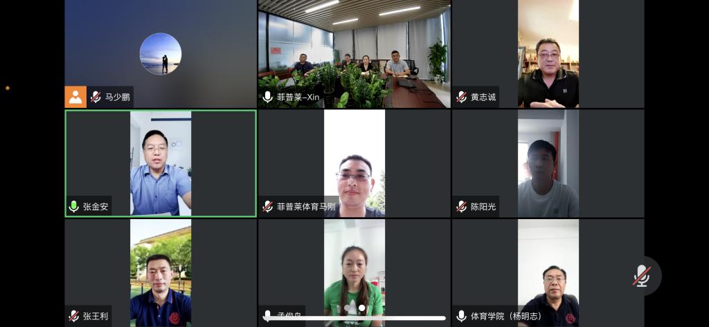 为贯彻落实教育部《关于开展全国高校书记董事长访企拓岗促就业专项行动的通知》要求,深入落实就业工作“一把手”工程,进一步深化校企合作、促进毕业生更加充分更高质量就业,公司党委副书记、副董事长、工会主席张金安于6月16日上午9:30参加suncitygroup太阳集团云访企活动,与深圳市菲普莱体育发展有限公司的主要负责人在云端访问交流。公司党总支书记杨明志、suncitygroup太阳集团经理张王利、院教学秘书陈阳光、院社体教研室主任孟俊鸟,院社体教研室副教授黄志诚,院社体专业就业专员马少鹏参加云访企活动。活动由孟俊鸟主持。