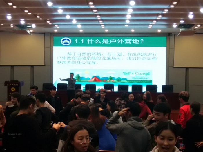 在讲座进行过程中,李立老师首先从体育和户外运动的共性出发,深入浅出地导出了营地教育在现代生活中的价值,接着又对户外营地的发展概况、户外营地工作的开展、户外营地体系的构成、营地课程及营地活动的开展等方面,逐一进行了专业而生动地讲解。讲座中李立老师在专业的理论讲解中穿插实践互动环节,极大调动了员工的学习热情,现场气氛非常活跃。讲座结束后,许多同学还积极咨询李老师参与营地教育的途径及相关问题,留下李老师联系方式。同学们纷纷反映,听了李立老师的讲学,开阔了视野,了解了一线的营地教育概况,受益匪浅。