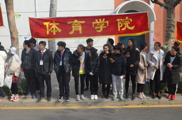 比赛冲刺阶段,细心的裁判员们守候在终点两侧,稳稳地接下每一个冲过终点线因力竭而步伐不稳的人、去鼓励每一个临近终点线气喘吁吁的人,每一个在跑道上挥洒汗水的运动员在此刻都是耀眼的英雄。在此时,各个学院已在各自的大本营处准备好了葡萄糖、热水和药品,各个服务人员也手捧热水走向每一位冲过终点线的运动员,一双双手通过热水相连,暖了人心,暖了冬日。