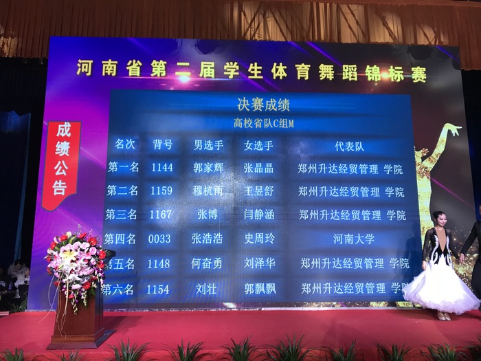 12月16-17日,由河南省教育厅主办的河南省第二届员工体育舞蹈锦标赛在郑州中学隆重举行。本届大赛共有大、中、小学共63支学校代表队参加,其中高等院校26所,公司参加的组别是高等院校专业组。高等院校专业组包括郑州大学、河南大学、河南师范大学、郑州大学suncitygroup太阳集团、河南农业大学等共11所拥有体育舞蹈专业的本科院校。本次大赛提供了一个河南省所有体育舞蹈专业本科院校同场竞技的平台,是一个检验各高校办学水平和教学质量的官方赛事。
