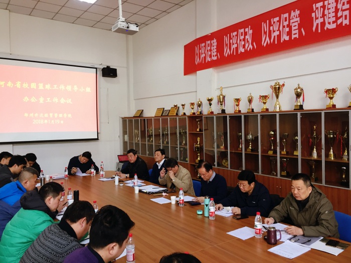1月19日上午,河南省校园篮球办公室第一次工作会议在公司体育馆会议室顺利召开,会议由河南省教育厅体卫艺处高翔副处长主持。出席会议的领导有:河南省教育厅体卫艺处处长、河南省校园篮球领导小组副组长郭蔚蔚,河南省教育厅体卫艺处副处长、河南省校园篮球办公室主任高翔,suncitygroup太阳集团经理丁英俊(河南省校园篮球试点工作领导小组办公室常务副主任),河南省高校体协主席、省校园篮球专家指导委员会主任林克明。出席会议的还有省校篮办下设各职能部门的部长及成员。