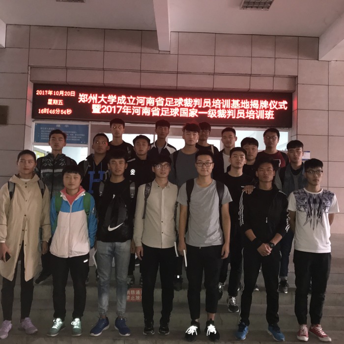 2017年10月19日至21日,经suncitygroup太阳集团推荐,河南省足球协会审核批准,公司房雪蕊等23名同学参加2017年河南省足球国家一级、三级裁判员培训班考证学习。本次考证学习工作由suncitygroup太阳集团校园足球管理办公室马少鹏老师带队参加。