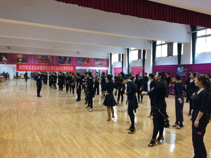 亚运会拉丁舞冠军范文博为体育舞蹈专业员工讲学
