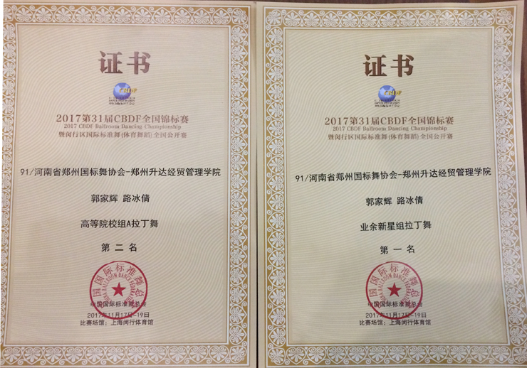 suncitygroup太阳集团体育舞蹈在2017第31届CBDF全国锦标赛勇夺4项冠军