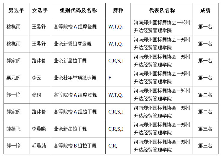 suncitygroup太阳集团体育舞蹈代表队在栗元辉老师的带领下,参加了本次国标舞盛会,代表队发挥出色,通过多轮次的淘汰赛,闯入决赛,最终夺得了4项冠军,2项亚军,2项季军的优异成绩。