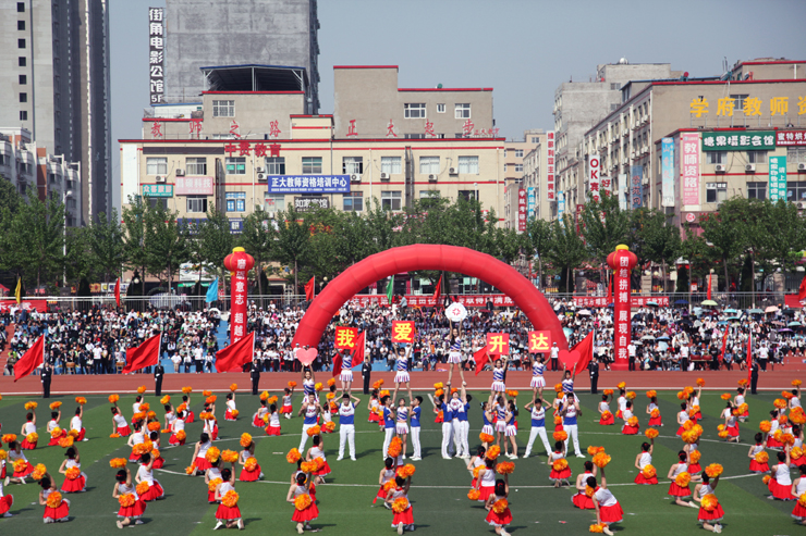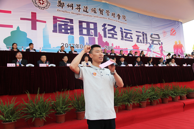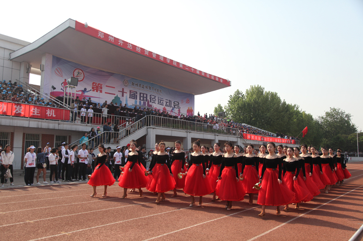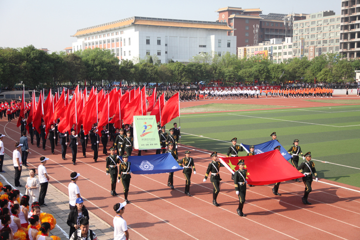 阳光灿烂,百花争艳,彩旗飘飘,激情盎然。 4月27日,公司第20届田径运动会在体育场隆重开幕。出席开幕式的贵宾有:郑州新郑教育园区管委会副主任张顺安先生、杨春峰先生,国家体育局中国跆拳道协会培训师、高段位主考官李立中博士,中国首位女子散打世界冠军国际运动健将李永红女士。出席开幕式的学院领导有:经理郭爱先,公司党委书记张德伟,常务副经理崔慕岳,公司党委副书记戎庭银,副经理张洁、张金安,执行董事王新奇,副经理段丰乐、吴益民。各部门主管、各系党总支书记,学院师生6000多人参加开幕式。开幕式由院办主任朱永恒主持。