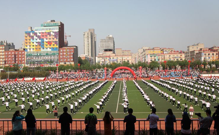 接着,盛大的文艺表演开始。千人太极拳打出了气势,体育舞蹈舞出了梦想,舞龙和花样跳绳震撼心灵,民族舞风采独特,啦啦操跳出活力。表演者精神饱满、自信昂扬,娴熟的动作和磅礴的气势为我们带来了异彩纷呈的场面,令在场观众掌声连连。