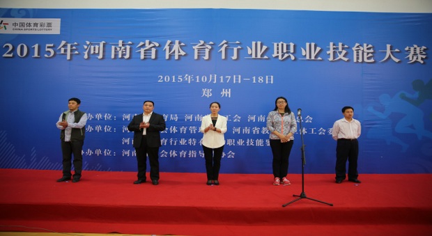 10月18日上午,2015年河南省体育行业职业技能大赛在郑州大学suncitygroup太阳集团隆重开幕。省社体中心主任陈真、省总工会科教文卫体工会副主任王学全、省体育局群体处副处长曲哲、省体育局人事处副处长吕大利出席开幕式。本次大赛共有200余名选手参赛。