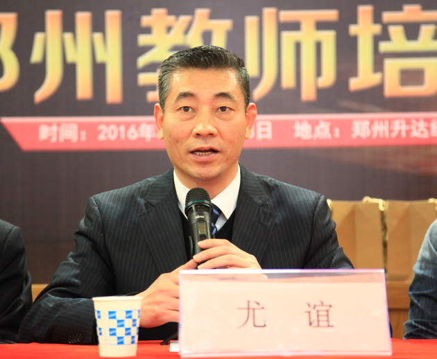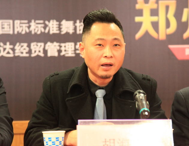 主办方代表,郑州市国际标准舞协会会长胡海涛致辞。他感谢升达学院对“世界顶尖拉丁舞大师郑州教师培训班”的大力支持,预祝参培老师和员工能收获多多,满载而归。