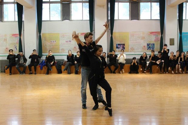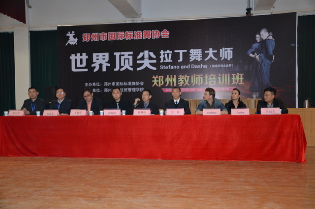 本次世界顶尖拉丁舞大师郑州教师培训班一共进行为期四天的学习,拉丁舞世界冠军Stefano and Dasha进行为期两天的拉丁舞教学,一共为同学们讲授了伦巴、恰恰、牛仔、斗牛、桑巴五支舞舞蹈原理、基本运步、花样组合等内容,两位世界冠军教学非常认真、把每一个动作剖析的清清楚楚,然后一个环节一个环节的进行学习,并反复的做示范,跟学员一同练习基本步法,使同学们在反复的练习中逐渐掌握住舞步的要领。郑州市国际标准舞协会会长胡海涛教授评价到,这才是我们中国舞者要学习的核心技术,只有把细节掌握住了,才能进一步提高舞蹈的品质和效果。同学们也反映,通过跟大师两天的学习,颠覆了许多以前的理念,把自己带入到一个全新的拉丁舞世界,两名大师每讲完一支舞,都要为学员们带来一段即兴表演,世界冠军精彩的舞蹈震撼了现场的每个人。