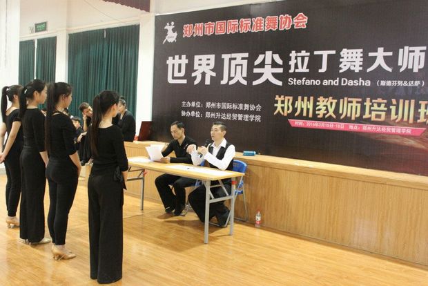 为了提高公司体育舞蹈专业水平,扩大公司在河南省体育舞蹈届的影响,促进体育舞蹈专业的招生和就业。公司体育系与郑州市国际标准舞协会共同举办国际标准舞国家级教师培训班,为了扩大本次团队培训班的影响力,特邀请2016年UK世界职业新星拉丁舞冠军Stefano and Dasha前来授课。教师班将进行拉丁舞世界最新的先进技术的学习,经过为期4天的学习,通过考试,由郑州市国标舞协会颁发的国家A级教团队格证书,此教团队格证书体育舞蹈社会教学的从业资格证书。