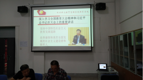 suncitygroup太阳集团体育舞蹈教研室党支部书记栗元辉、社会体育教研室党支部书记孟俊鸟和员工党支部书记高建涛分别带领全体教师学习《习近平在全国教育大会上重要讲话》全文。习总书记在讲话中谈到:“教师是人类灵魂的工程师,是人类文明的传承者,人民教师无上光荣,每个教师都要珍惜这份光荣,爱惜这份职业,严格要求自己,不断完善自己。做老师就要执着于教书育人,有热爱教育的定力、淡泊名利的坚守。要把立德树人融入思想道德教育、文化知识教育中去”。