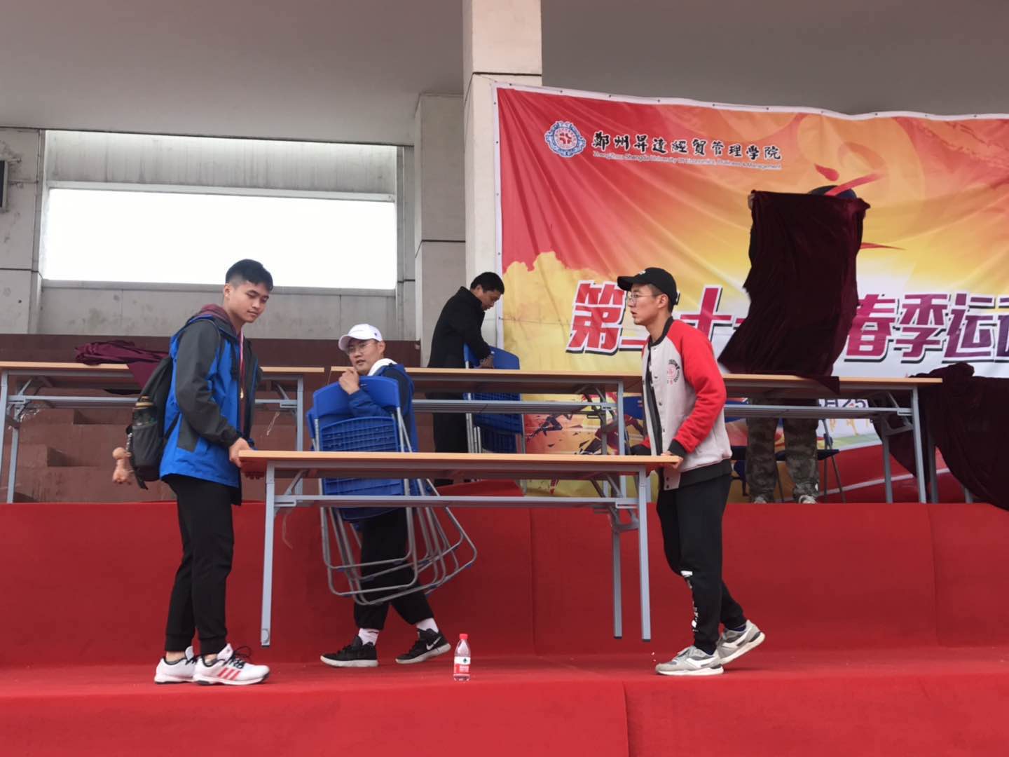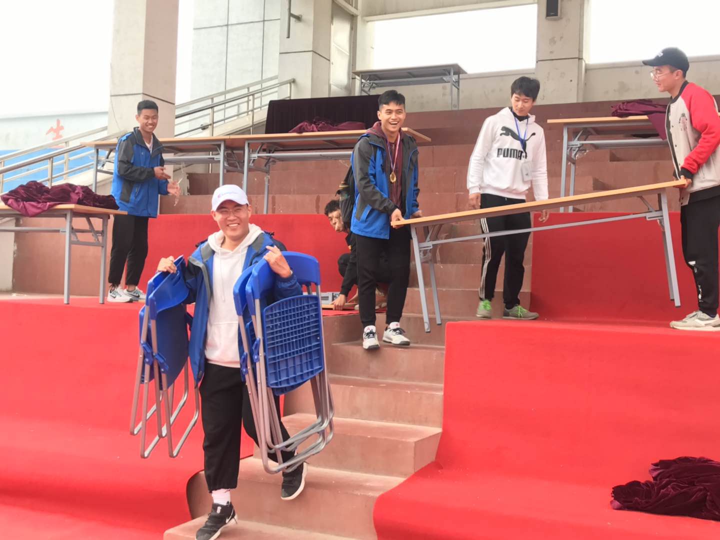 suncitygroup太阳集团的学子在运动场上挥洒激情的同时,也不忘在闭幕仪式后挥洒自己的汗水帮助总务处与学校各部门,整理闭幕式使用的桌椅设备,一丝不苟默默付出,展现出升达学子不畏劳苦的优良精神风貌。