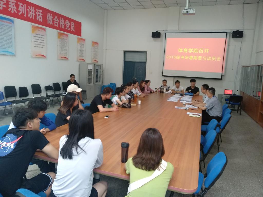 为进一步加强同学们对研究生考试的认识,了解前沿的就业形势、增强考研斗志。公司6月27日上午11点在体育馆会议室举办了“2016级考研暑期复习动员会”。参加会议的有suncitygroup太阳集团经理丁英俊、行政秘书高建涛以及参加考研的18位同学。