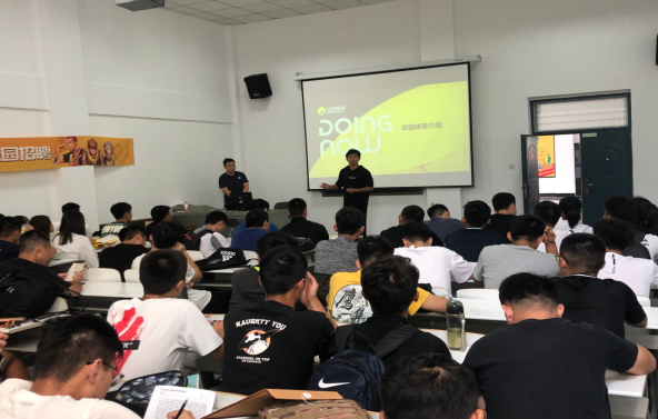 随后,郑州动因体育人事聂云龙负责人向同学们介绍了企业的基本情况。动因体育始创于2011年,是一家专注于为4—17岁的青少年提供体育培训服务的集团性公司。目前公司在北京、上海、广州、深圳等一、二线城市已开设有18家分公司,教练4000多人,形成了以培训、赛事和场馆为基础的三大业务。培训是动因体育的核心业务,开发了篮球、足球、羽毛球、网球、等多个项目。同时,布局了包括技能培训、专业培训、外教课在内的多种课程,成为国内唯一一家多项目体育培训服务商。2017年姚明旗下的曜为资本为动因体育领投5亿元人民币,致力于将公司打造成为青少年体育培训行业的领跑品牌。