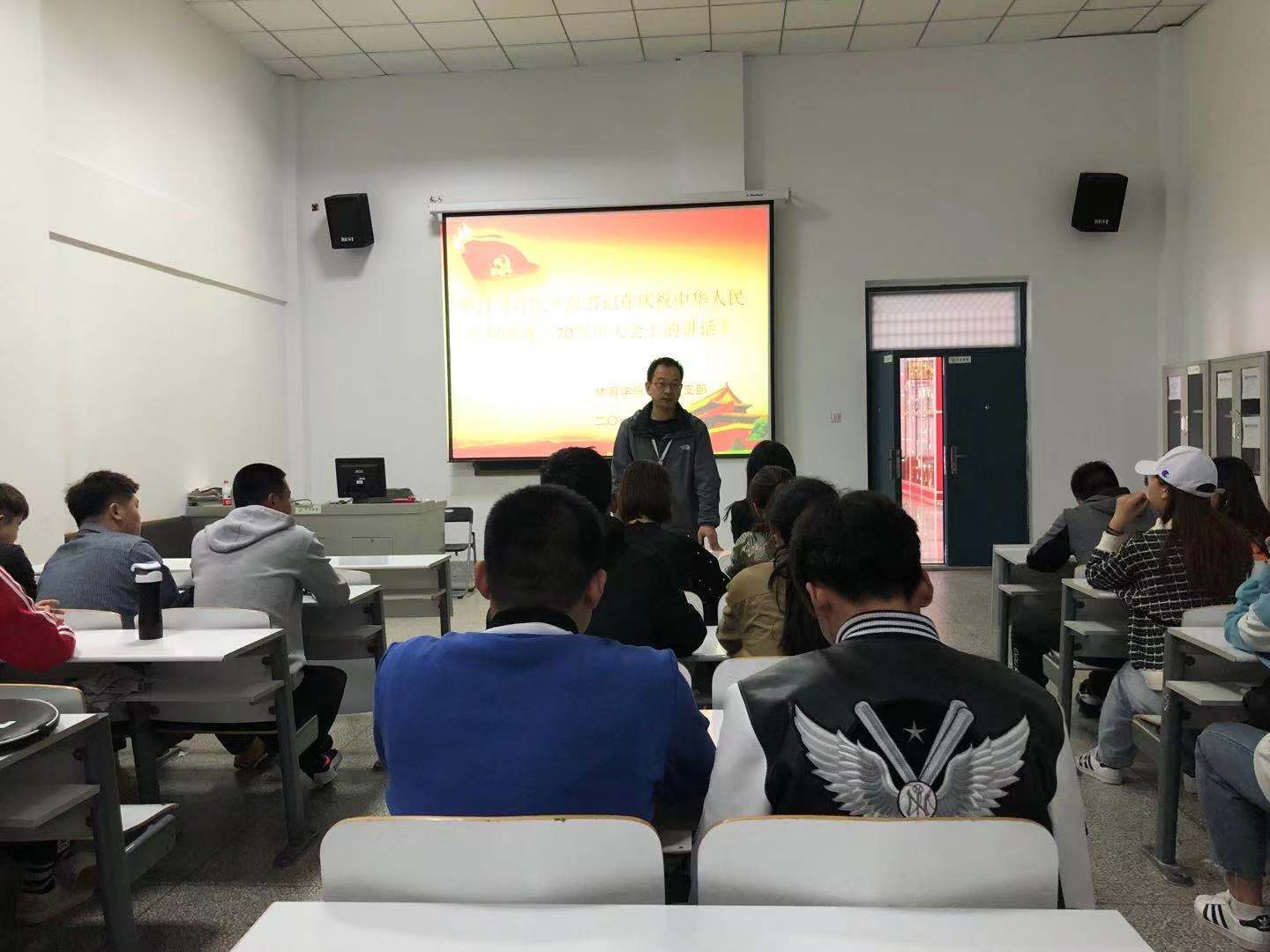 首先,党支部书记高建涛老师带领大家重温了习近平总书记在庆祝中华人民共和国成立70周年招待会上的重要讲话。接下来,员工党支部成员和师生代表围绕学习贯彻总书记重要讲话交流了认识和体会。