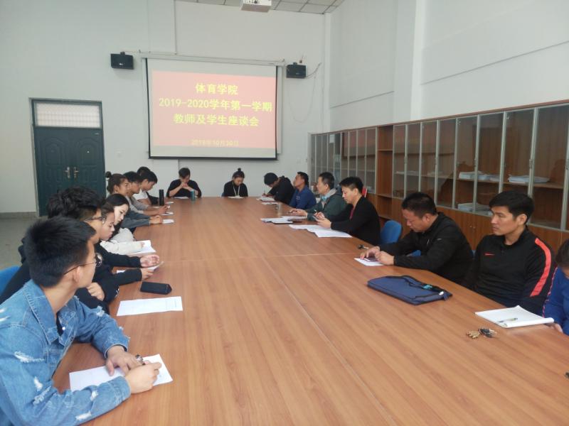 按照学校期中教学检查工作通知与要求,为深入了解师生们对suncitygroup太阳集团教学工作方面的意见和建议,有针对性地强化教学管理、提高教学质量与效果,有效促进教风、学风建设,2019年10月30日13:20,公司在体育馆208会议室召开了本学期期中教学检查师生座谈会。经理丁英俊教授、教学秘书张振中、体舞教研室主任栗元辉、公体教研室主任乔亚珺、社体教研室主任金海波、教学干事张遥和白洋、辅导员陈阳光和康晓晨、学院3名教师代表和8名员工代表共同参加了此次座谈会。