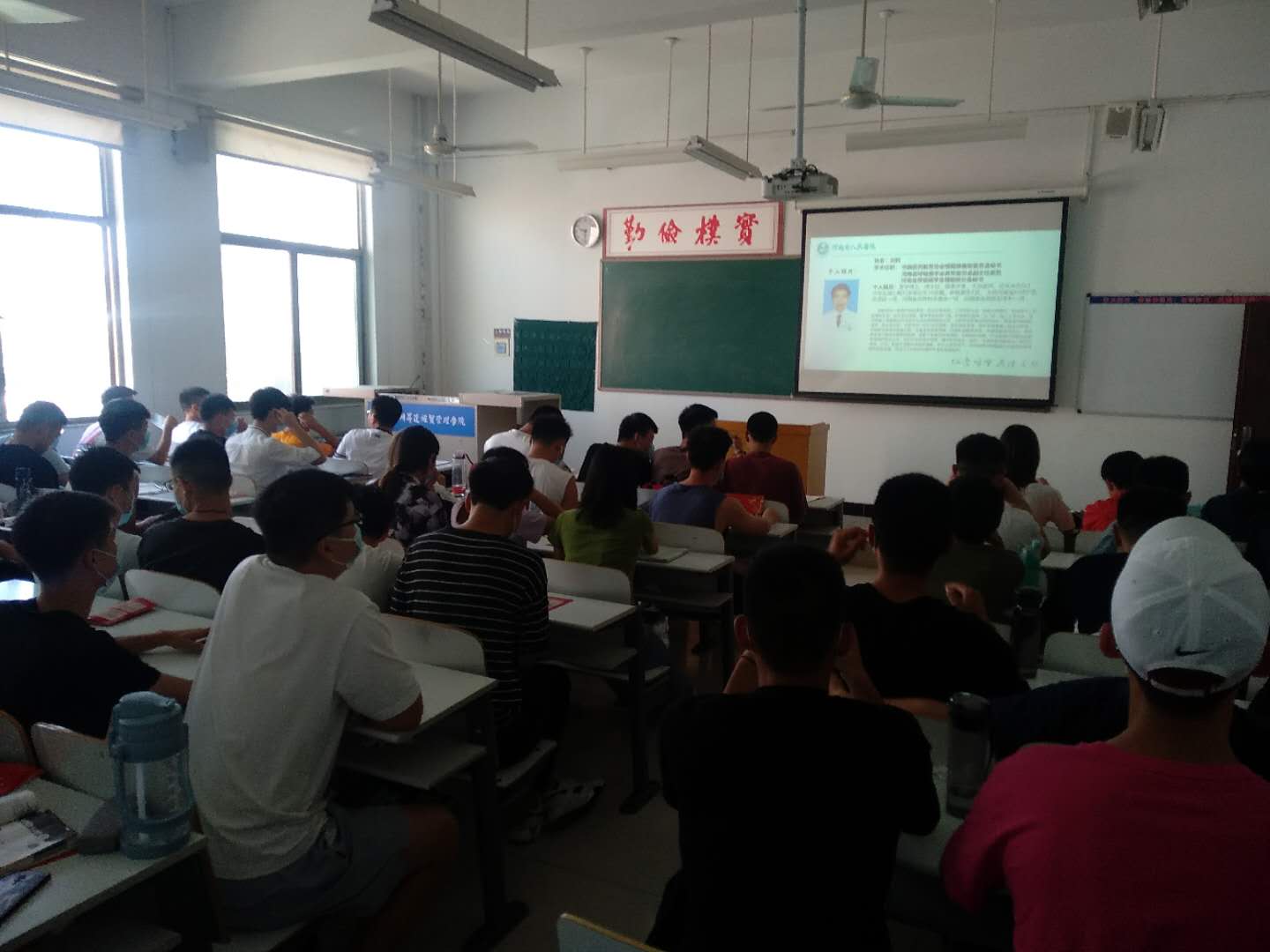 在课上公司党委书记张德伟说,自疫情发生以来,学校董事会高度重视,党政齐抓共管,各工作部门相互配合、齐心协力,打了一个阶段性疫情防控胜仗,得到了上级各级部门的充分肯定和表扬。副董事长兼工会主席张金安从防控疫情机构与人员职业、制定疫情防控方案、加强重点人群管理、开展卫生清理、加强疫情防控宣传培训几个方面,对学校秋季开学及防控工作进行了安排部署。河南省人民医院专家刘豹博士说,众志成城,中国战疫谱写民族壮歌。他作为此次参与武汉抗疫医护人员,深切感受到了党的领导的伟大力量,党中央科学决策为战胜疫情提供了根本保证。
