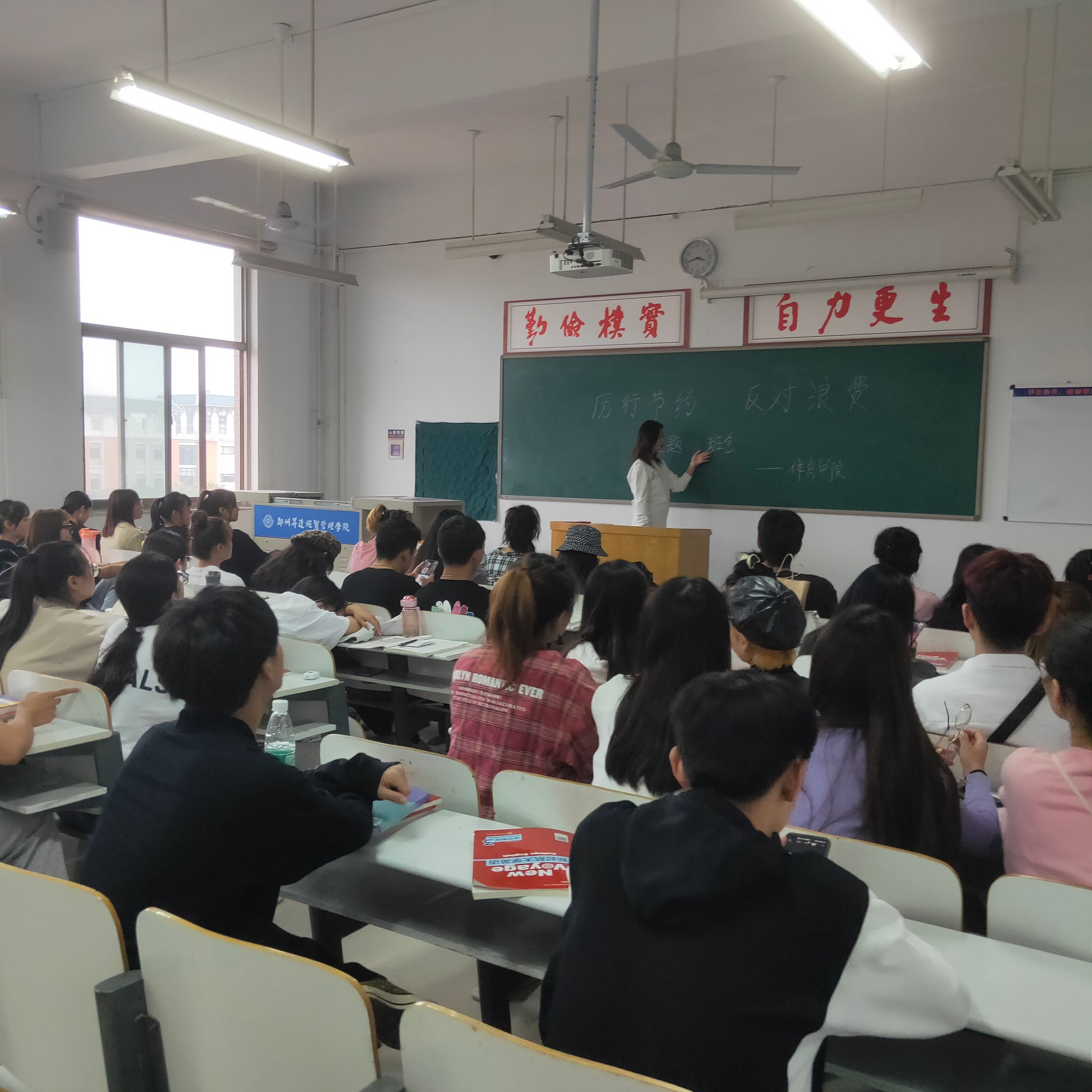 本次主题班会以辅导员老师为主讲以及形式多样的互动方式进行。在主讲环节,辅导员老师结合社会现象和身边具体事例,通过讲解,观看视频影像,发出倡议等多种形式,引导同学们认识节约的重要意义,积极响应国家的号召。在互动环节中,同学们在辅导员老师的引导下进行了讨论,明确表达了从我做起,“厉行节约,反对浪费”的决心。