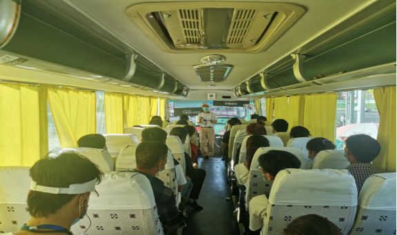 疫情防控不能松懈,志愿者跟车向新同学宣读新生入校防疫须知,作好座位次序登记。
