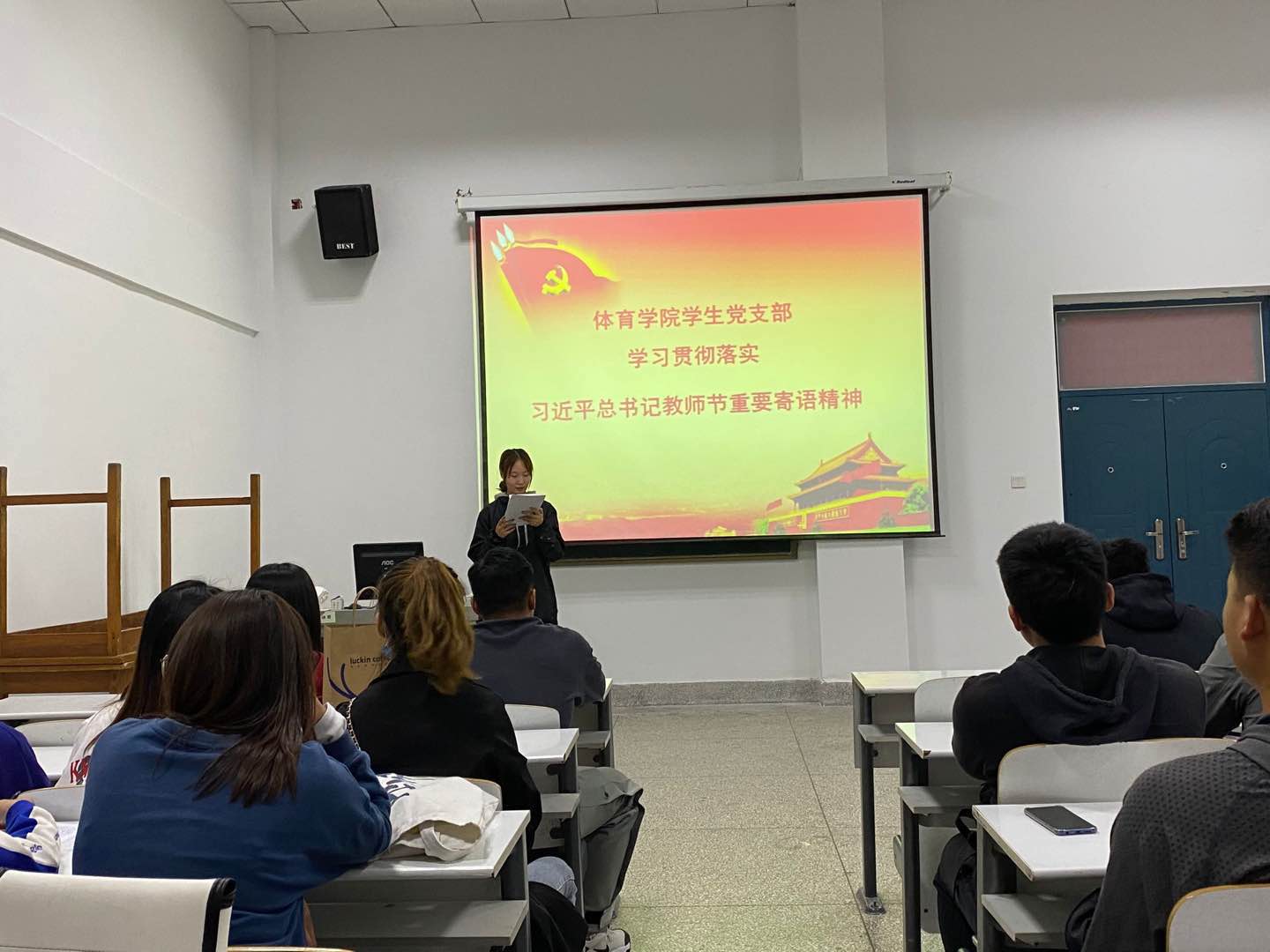 10月8日下午,suncitygroup太阳集团员工党支部在体育馆多媒体教室召开学习会议,传达学习习近平总书记给广大教师重要寄语精神,会议由suncitygroup太阳集团员工党支部书记高建涛主持,全体员工党员以及入党积极分子参会。