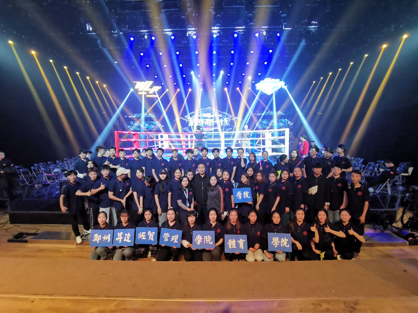 10月23日,公司体育专业员工受邀参加河南省电视台武林风新一代(WLF)节目现场录制,本次活动是由升达员工联系,省电视台武林风节目从创办以来到目前有十余位升达优秀毕业生在栏目组担任导演、编剧、宣传策划等职务,对我们升达学子起到引领示范榜样作用。接到邀请后,suncitygroup太阳集团张王利经理立刻组织安排,党总支杨明志书记亲自带队,社体教研室主任孟俊鸟、辅导员郭建菊老师组织17级、18级、19级、20级120名员工代表参加了此次活动。员工分上午和下午两批到武林风新一代节目现场进行观摩学习。员工参与此次武林风赛事活动作为suncitygroup太阳集团社会体育指导与管理专业认识实习的活动内容之一,使同学们对于社会体育组织赛事、形式及传媒活动的组织等方面有一个直观的认知,为以后更好的走向工作岗位奠定基础。