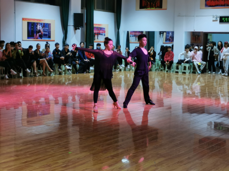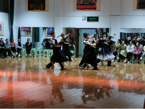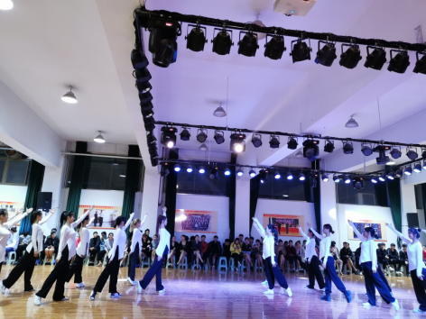 随后专业交流正式开始。17级的10位同学为大家带来欢快的拉丁集体舞,火爆热烈;16级12名同学带来的摩登舞集体舞优秀高贵;18/级、19级同学6名同学的拉丁舞双人恰恰、伦巴展示出了高超水准和竞技状态;17级6位摩登单人舞,舞姿曼妙引来大家一阵赞叹;栗元辉老师也带来了一段高超的华尔兹表演,燃爆全场;18级25名同学带来了歌舞《祖国不会忘记》,高亢的歌声、精彩的舞蹈把交流活动推向了高潮。老生的精彩表演使得2020级新生既兴奋又充满了渴望,希望能尽快像他们一样走向赛场走向舞台,绽放自己的光芒。