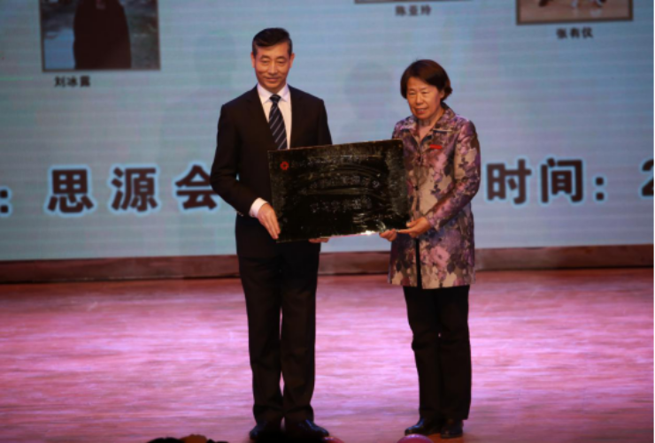 董事长郭爱先教授向尤谊主席颁发了公司校企合作牌匾