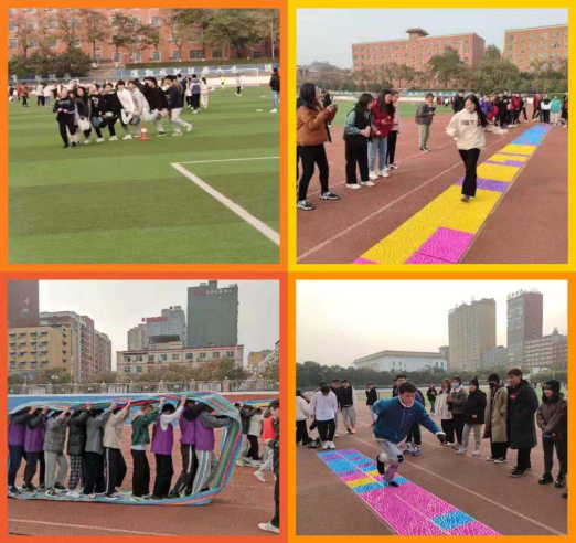 在心心相印活动中,参赛同学之间的互助精神与集体荣誉感使同学们认识到了体育游戏的魅力;青蛙跳荷叶中,同学们的配合默契以及顽强奋斗精神和良好的团队配合精神感染了在场所有人;脚踩趾压板这个激动人心的环节中同学们忍着疼痛,为了胜利依然努力向终点奔去;蒙眼击鼓中,参与者与观赛者的共同协作完成比赛,尝试了信任与指挥带来的不同体验;同时还有链接加速和无敌风火轮,这两个项目让我们对集体的力量肃然起敬,看到每队参赛同学的坚持不懈,让我们同学们懂得了团结的意义。