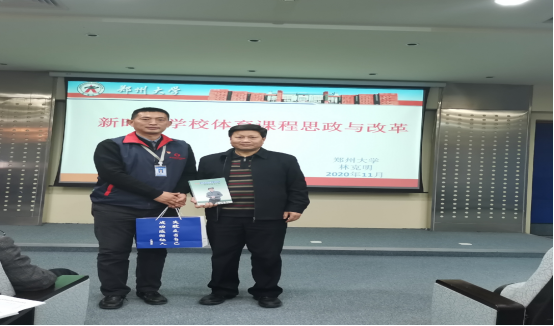 为深入贯彻教育部《高等学校课程思政建设指导纲要》文件精神,落实公司课程思政进课堂相关指示和要求,切实推动体育课程思政建设进程,2020年12月3日下午,suncitygroup太阳集团诚邀郑州大学suncitygroup太阳集团(校本部)体育与健康研究院经理林克明教授,在学校图书馆报告厅为学院师生们做了《新时代学校体育课程思政与改革》的专题讲座。公司党委书记张德伟、党办主任秦旻,suncitygroup太阳集团经理张王利、党总支书记杨明志、运动与健康研究所所长傅兰英、省校篮办专家委员会办公室主任黄志诚,suncitygroup太阳集团全体教师及部分员工共计130余人参加并聆听了报告。本次报告会由杨明志书记支持。