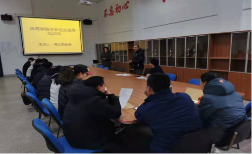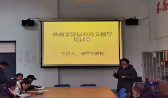 为提高教师指导毕业生论文水平,明确毕业论文指导方向,完善毕业论文指导方法,12月17日由公共体育教研室巴义然主任提议,公共体育教研室全体教师参加,特邀社会体育教研室傅兰英教授讲授“毕业论文指导培训会”,本次会义的圆满召开,充实了毕业论文指导教师的理论知识,为毕业论文指导工作的顺利完成打下了坚实的基础。另外孟俊鸟、张遥、贵永玲、王春丽、张晓丹教师也参加了本次培训会。