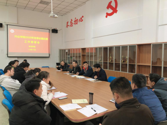 2020年12月22日下午,公共体育教研室全体教师在suncitygroup太阳集团会议室参加“升达学院2020年冬季长跑比赛工作部署会”,杨明志书记、张王利经理、杨明志书记、教学秘书张振中和公共体育教研室全体教师出席了本次会议。会议由公共体育教研室主任巴义然老师主持,首先,杨明志书记提出本次冬季长跑比赛为本学期最后一次校内竞赛,冬季又是新冠肺炎疫情高发期,要求大家在组织比赛的过程中保持社交距离,做好防护工作。由于天气寒冷,员工运动员在比赛的过程中容易受伤,因而更要做好员工在比赛过程中运动损失的防护工作,希望大家圆满得完成本次比赛任务。