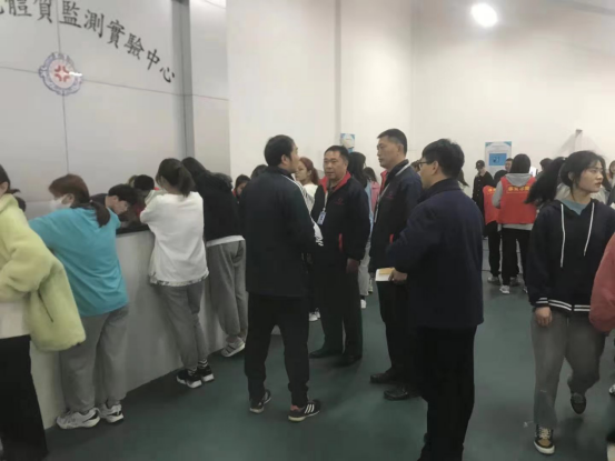 党总支书记杨明志视察室内测试项目时要求室内测试工作人员要注意安全,要提醒参加立定跳远测试员工动作的规范性,避免运动损伤的发生。由于室内较小,参加测试的人员较多,应保持通风透气,改善室内空气质量,避免疾病通过飞沫传播。每天要按时打扫室内卫生,提高工作环境质量,提高测试工作效率。在测试前应完成测试仪器的检测,确保测试数据准确,对出现故障的仪器应及时报修和更换,要保证老员工体质健康测试工作的顺利完成。