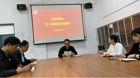 会上,高建涛老师对五一假期员工安全工作进行了具体安排部署,要求全体辅导员老师在放假前给各班级认真召开安全稳定主题班会,利用微信群、主题班会等线上线下相结合的形式,重点进行防盗、防电信诈骗和交通安全、旅游安全等方面的宣传教育,进一步提高员工的安全防范意识和应急处理能力。同时教育员工在放假期间要遵纪守法,提醒员工疫情没有结束,仍需做好疫情防护措施。