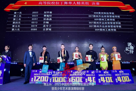 荣获高校拉丁舞C组冠军、高校单人拉丁舞精英组前六