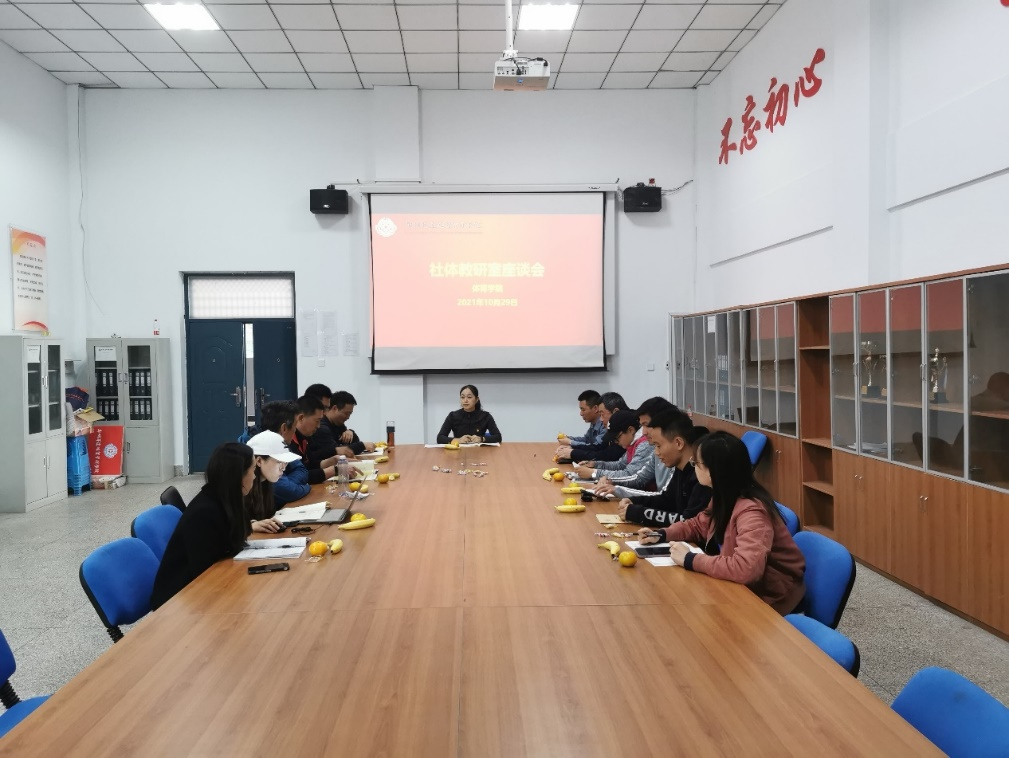 2021年10月29日下午,社体教研室开展了期中工作交流会议,会议由孟俊鸟主任主持,教研室全体成员参加了本次会议。