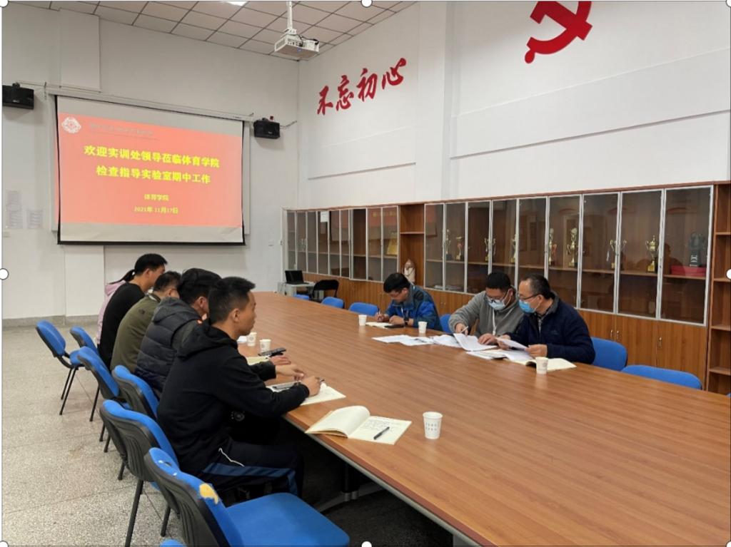 2021年11月17日上午9:00,学校信息化处处长李保华一行3人莅临suncitygroup太阳集团检查指导实验室期中管理工作。suncitygroup太阳集团书记杨明志、教学秘书陈阳光、社体教研室主任孟俊鸟、实验室主任金海波、郭之义老师、王嘉旋老师参加了本次检查工作。