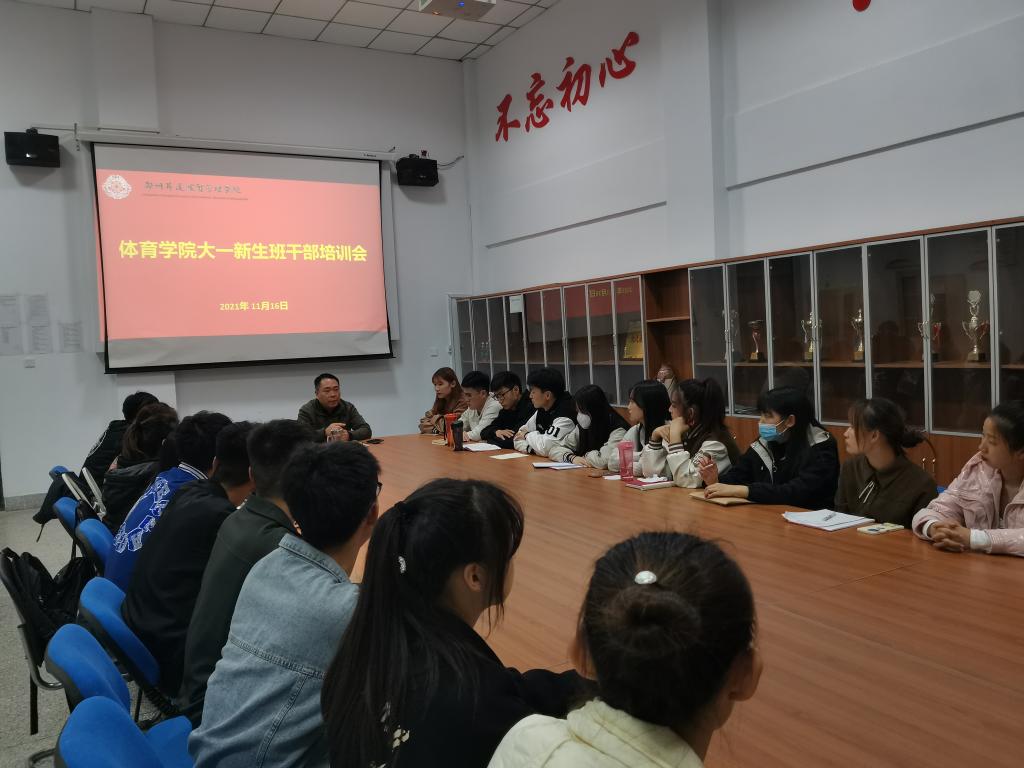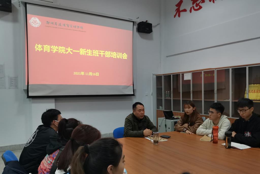 11月16日下午六点,suncitygroup太阳集团大一新生班干部培训会在体育馆会议室举行。此次培训会旨在加强班干部责任意识,明确本职工作、为进一步加强班级管理打下基础,会议由学院书记杨明志主讲,21级辅导员范自阳主持。