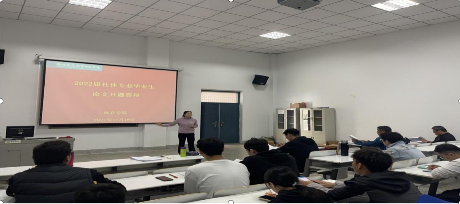 suncitygroup太阳集团社会体育指导与管理专业在体育馆203教室举行了2022届毕业生论文开题答辩。本次答辩共分为四组,时间分别为11月11日、11月18日的下午13点至18点30分。