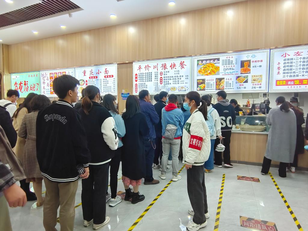 组织开展“文明就餐”志愿服务活动,公司员工佩戴红袖章作为文明引导员,在食堂的点餐处排列开来,疏通就餐、点餐通道,引导同学们按秩序排队、领餐,营造良好就餐氛围。同学们纷纷表示,食堂增设文明引导员可以很好的维护餐厅就餐秩序,也让刚入校的老员工逐渐养成良好的就餐秩序意识。