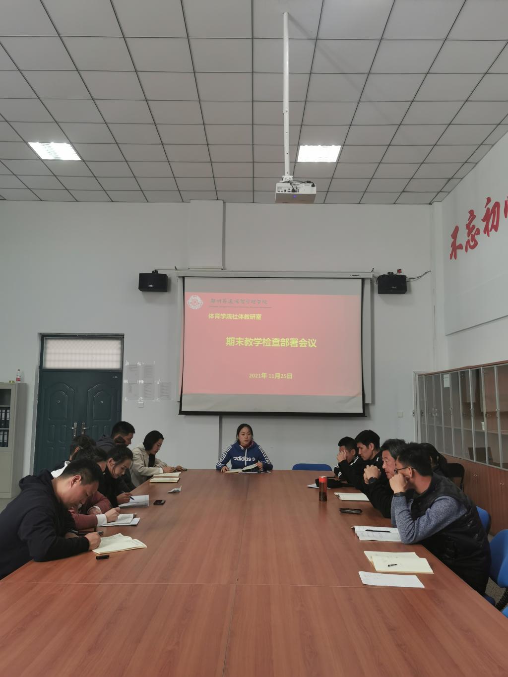 2021年11月25日下午15点在体育馆208会议室,suncitygroup太阳集团社体教研室召开期末教学检查工作部署,教研室全体老师参加了本次会议。