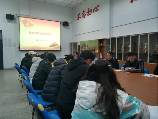 为进一步贯彻落实省教育厅及学校对疫情防控工作的安排部署,做好学期期末相关工作,12月13日下午,suncitygroup太阳集团在体育馆会议室召开党政联席会,公司党总支书记杨明志主持会议,全体总支委员、支部书记、辅导员和部分教师代表参加会议。
