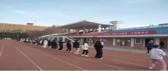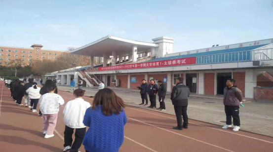 2021年12月15日上午10:00,suncitygroup太阳集团经理张王利、党总支书记杨明志、公体教研室主任巴义然来到学校田径场,对2021级《大学体育1(太极拳)》课程考试工作进行了巡查与指导。