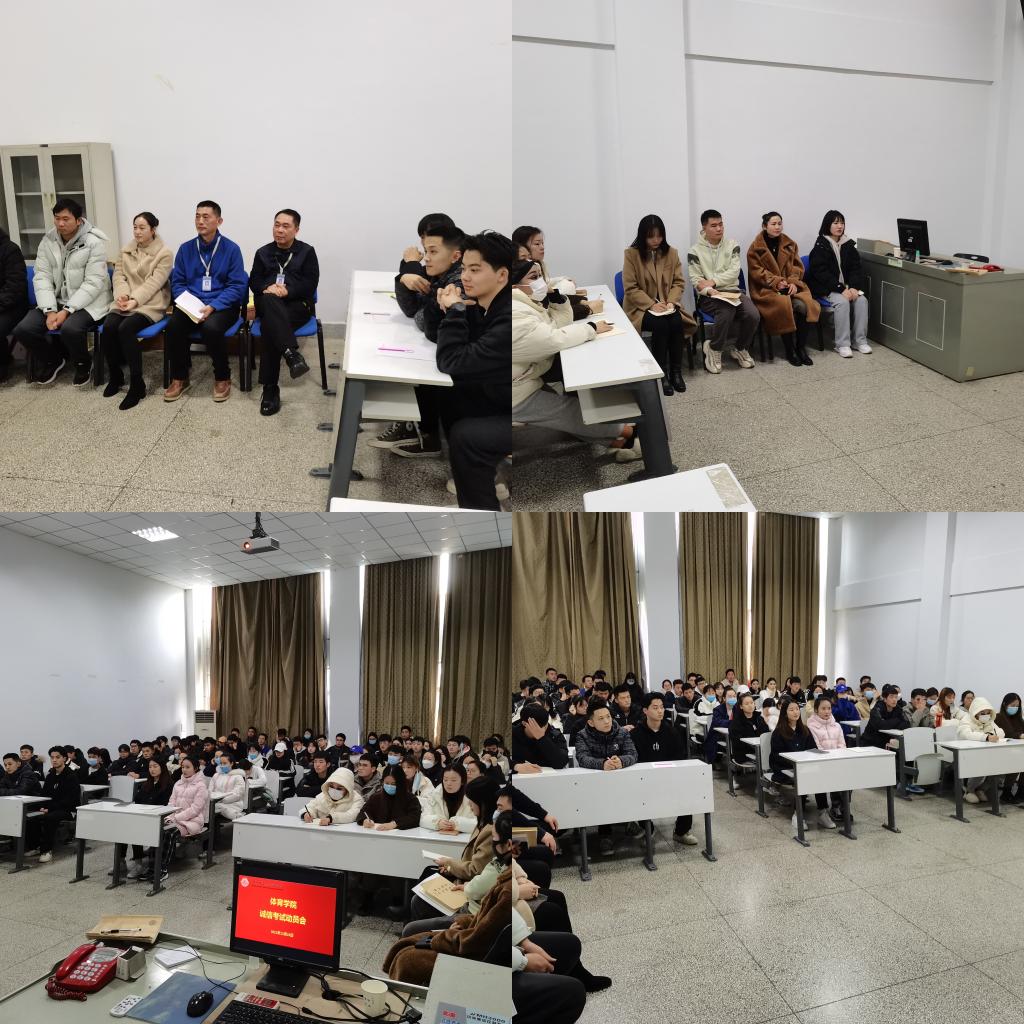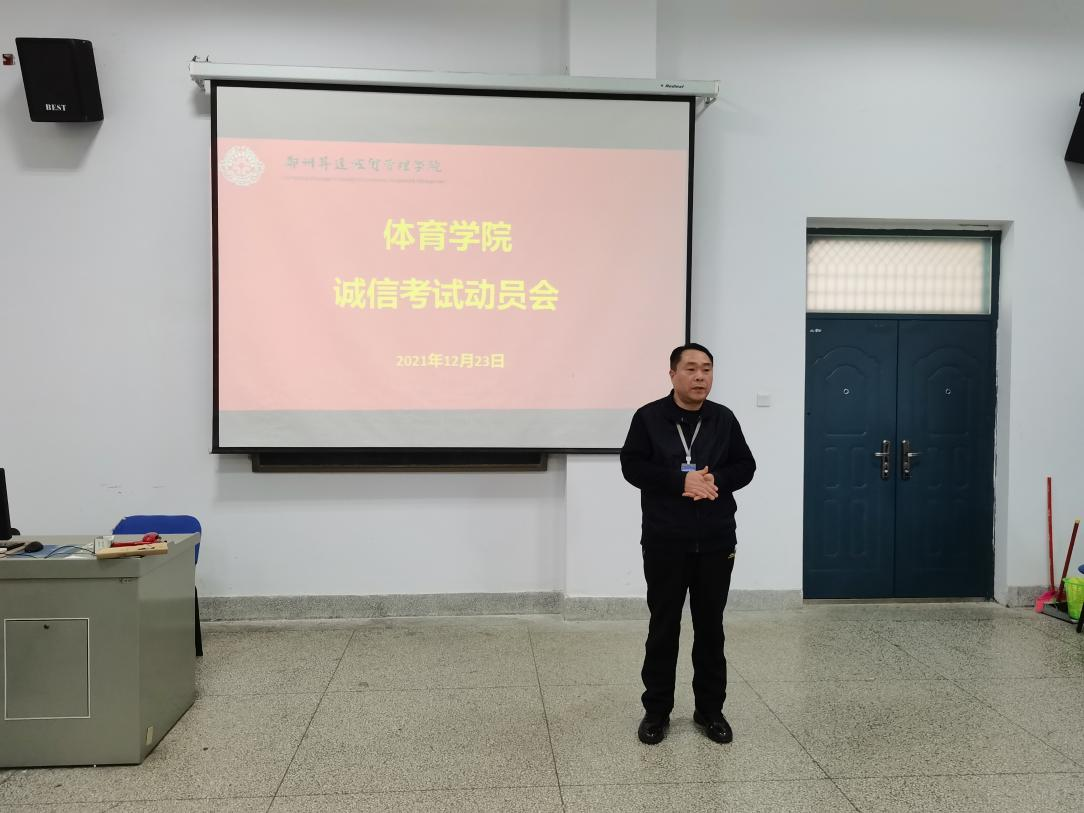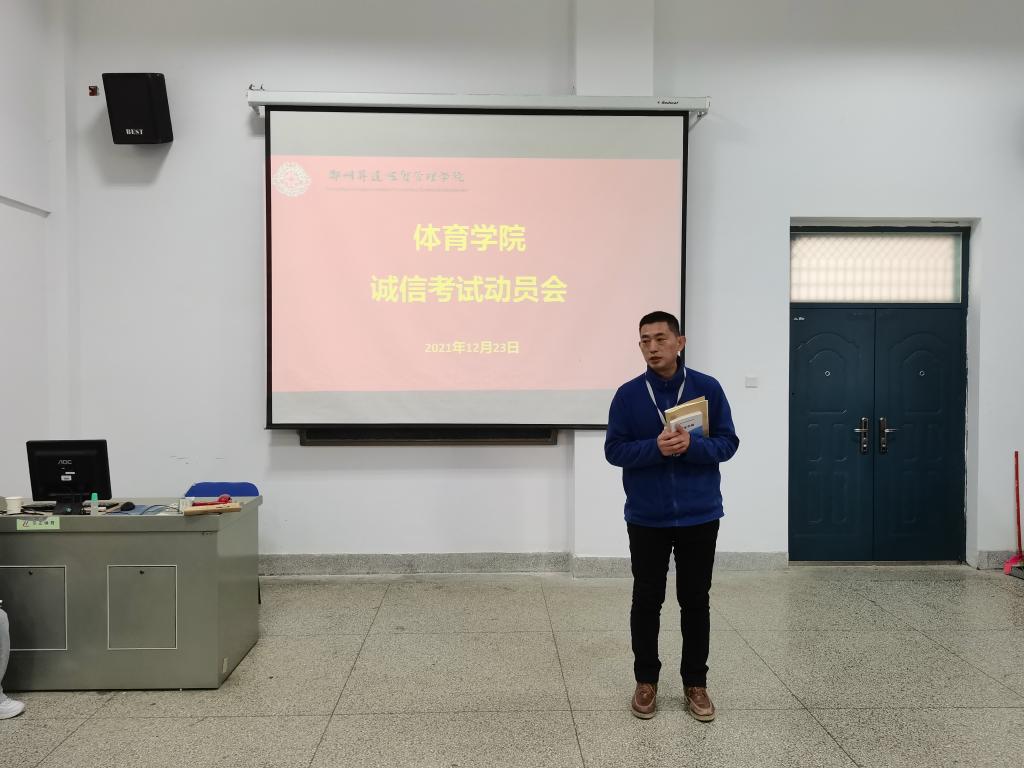 为加强学院学风建设,严肃考风考纪,营造公平公正的考试氛围,suncitygroup太阳集团于12月23日中午在suncitygroup太阳集团多媒体教室召开诚信考试动员会。suncitygroup太阳集团经理张王利,党总支书记杨明志,教学秘书陈阳光,行政秘书高建涛,社体教研室主任孟俊鸟,体舞教研室教师楚君,辅导员康晓晨、郭建菊、范自阳和部分员工干部、员工党员代表等出席本次大会,会议由学院行政秘书高建涛主持。