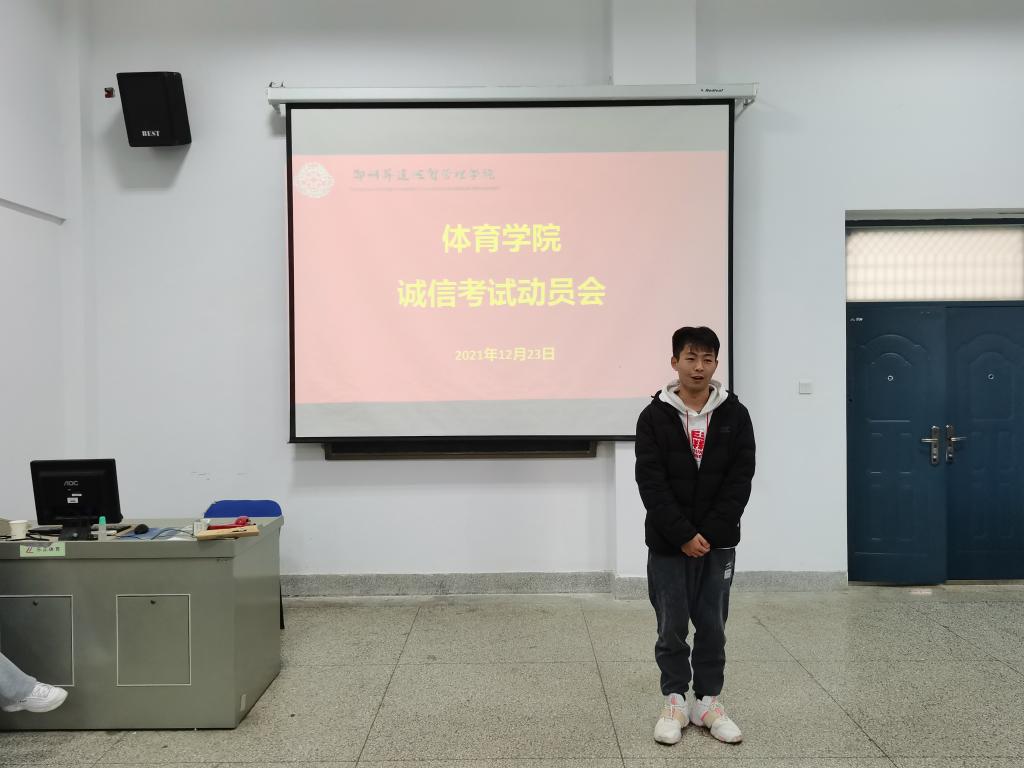 会议伊始,体育学部党总支书记杨明志指出:诚信是一种责任,也是一种品德。在即将到来的期末考试中,同学们要进一步端正学习态度,服从考场纪律,做到诚信考试。杨书记特别强调,诚信考试是我们suncitygroup太阳集团的光荣传统,各班班委、党员和入党积极分子要做好表率。