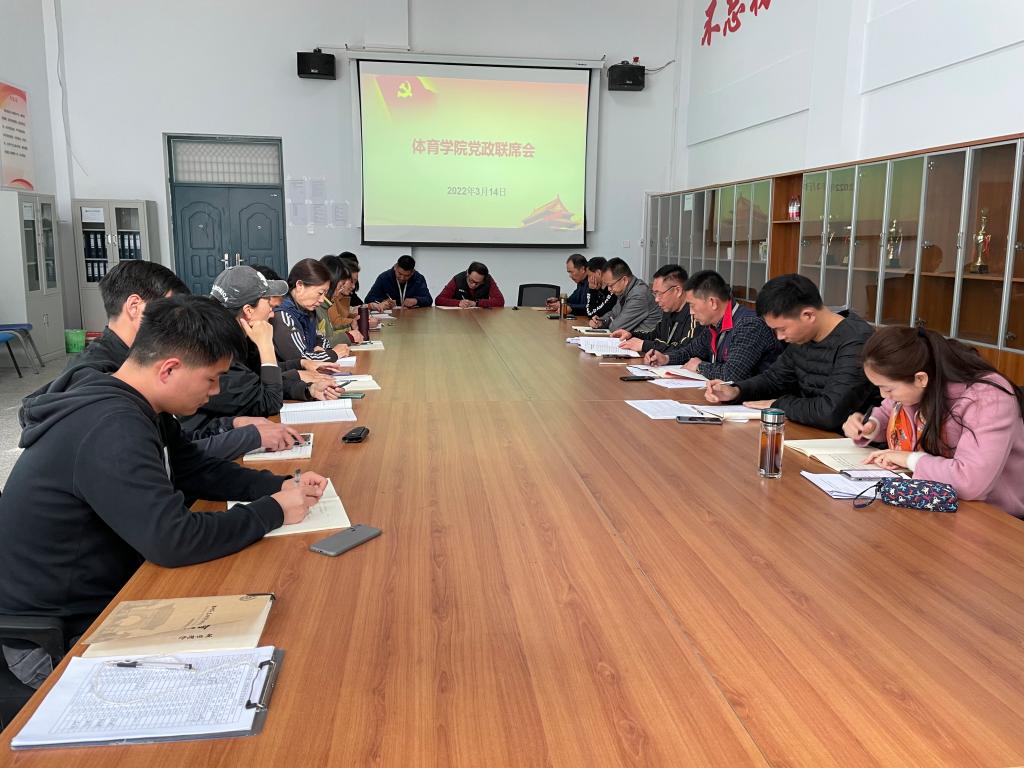 3月14日下午,公司党总支在体育馆会议室召开2021-2022学年第二学期党政联席会议,学院领导班子全体成员参加会议,会议由张王利经理主持。