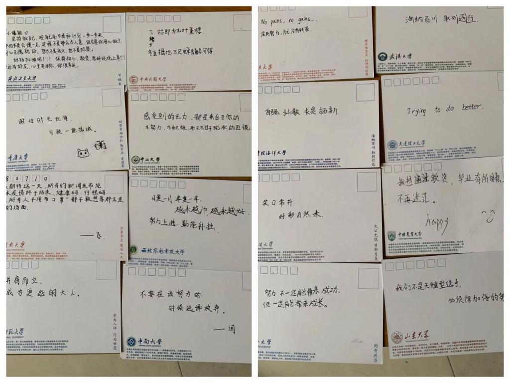 活动中,每位同学都积极参加,在明信片上写下自己的心愿与祝福,并一同分享。最后随着明信片的举起,同学们心中的负面情绪也随之远去。活动结束时,每位同学脸上都洋溢着笑容。