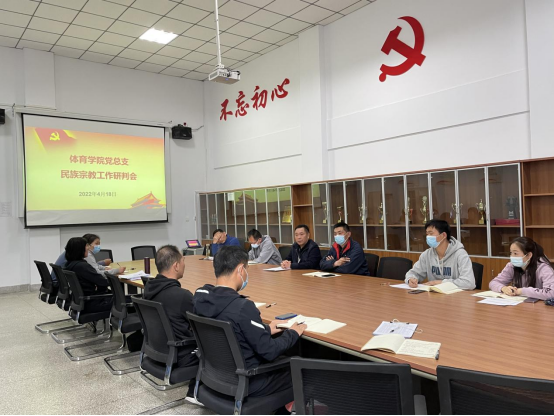 4月18日下午,公司党总支在体育馆会议室召开民族宗教工作研判会,公司党政班子成员参加了会议,会议由党总支书记杨明志主持。
