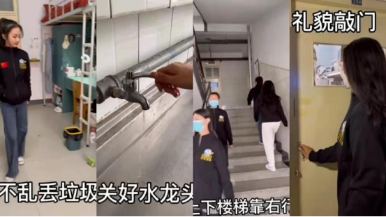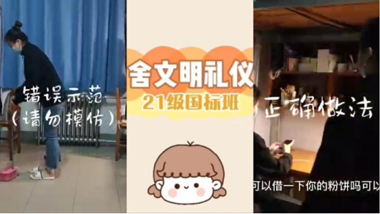 21级国标舞专科班围绕宿舍文明礼仪,通过在不同场景下错误示范和正确的文明礼貌做法对比,以此告诉同学们只有干净文明的寝室,才能给我们留下美好的回忆,倡导同学们保持好良好的寝室文化。