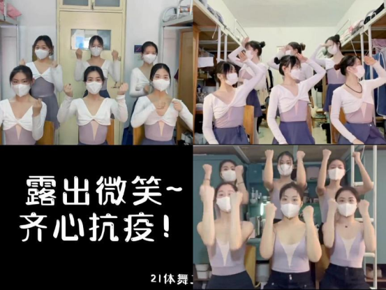 21级体舞二班二组成员则利用自身舞蹈专业特长,设计编排动作,配乐,拍摄了关于防疫宣传的手势舞蹈,在网络平台上为倡导防疫期间文明礼貌行为起到了良好的示范作用。